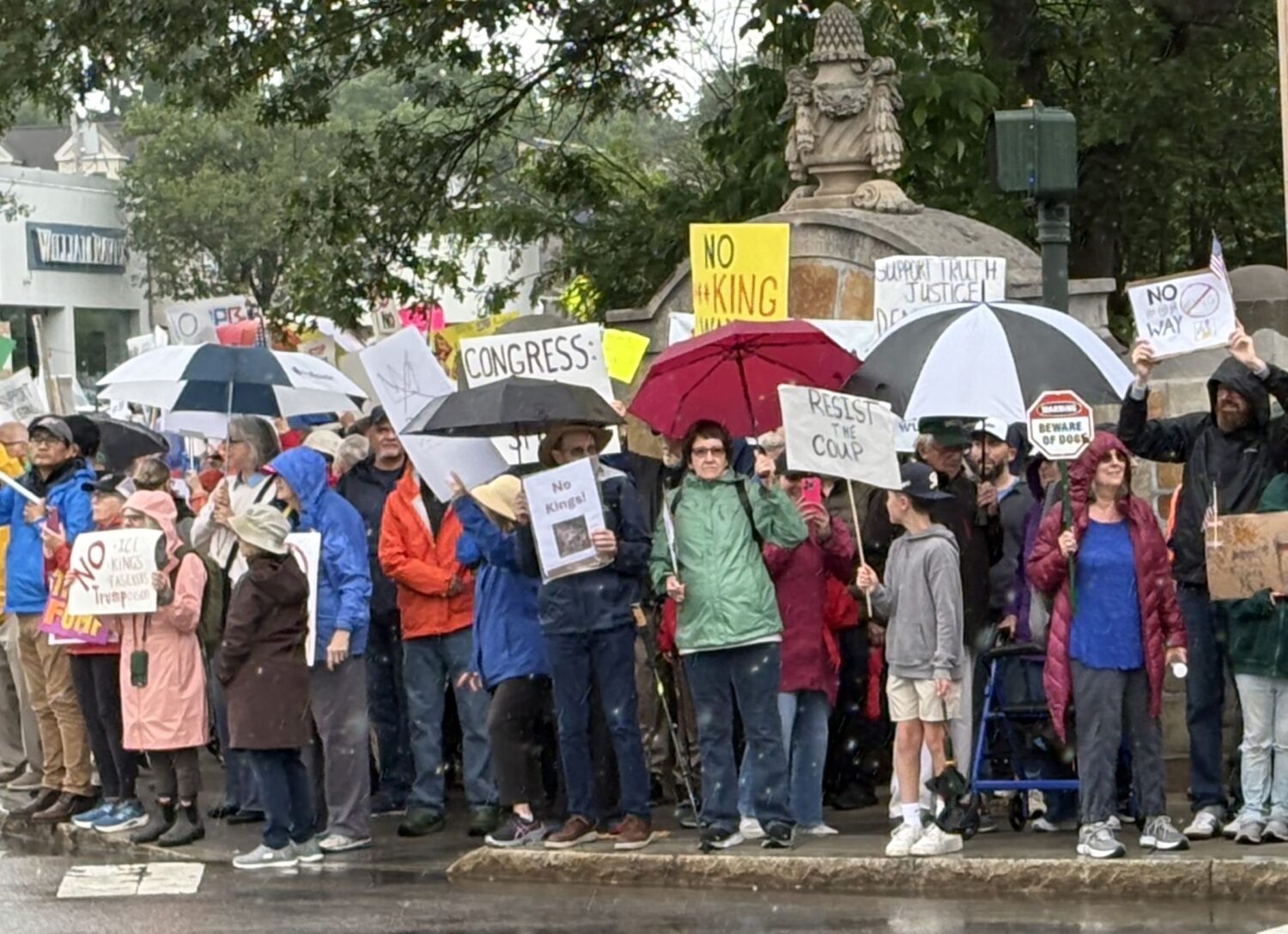 On a day drizzly and cool for a summer Saturday, more than 1,200 Newton residents and those from other communities joined together chanting for change. According to NoKings.org, the protest was “a national day of action and mass mobilization in response to the increasing authoritarian excesses and corruption of the Trump administration.”