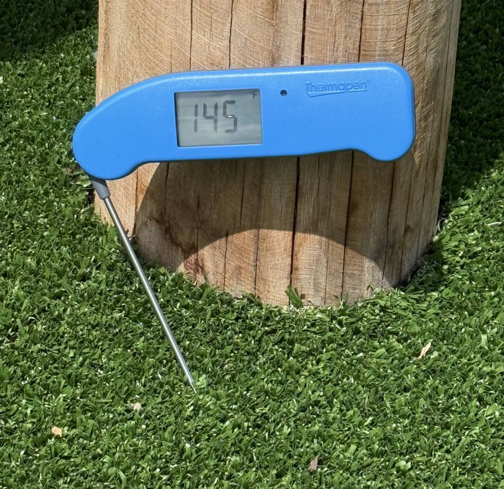 For comparison, my husband took another measurement of some natural grass nearby that registered 97 degrees when the air was 91 degrees. The 97 degrees of the grass is compared to the 145 degrees of the artificial turf.