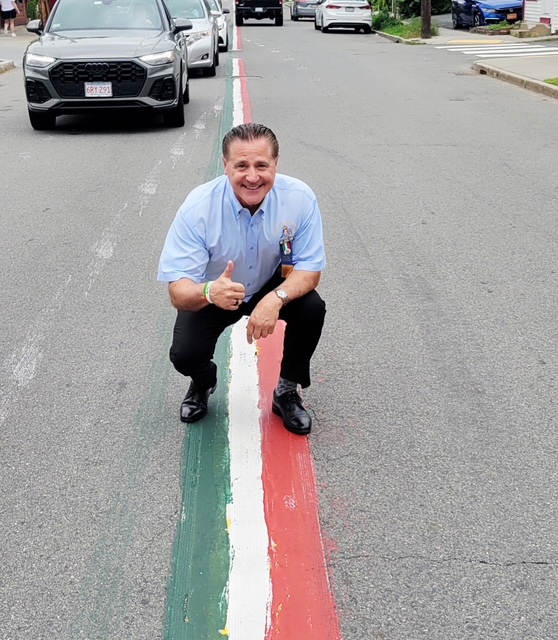 It began as a late-night surprise: street grinding and repainting of double-yellow lines on Adams Street on June 26, three weeks before the beginning of the 90th anniversary of the community’s major Italian annual celebration. Mayor Fuller defended the removal of long-standing Italian green-white-red stripes, saying that the double-yellow lines were a safety measure, and that neighborhood volunteers could paint the green-white-red stripes next to the yellow lines as a way of honoring their heritage. She termed the measure as a “win/win” for the community — ensuring safety while honoring heritage.