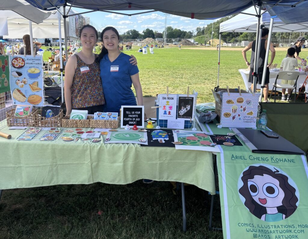 Ariel Kohane, a Newton South High School (NSHS) graduate, is currently an after-school teacher doing art on the side. She and her sister Keren had a booth for Ariel’s venture, Ako’s Artwork. They have lived in Newton with their parents all of their lives and have attended the July 4 event since she was a little girl. When Kohane was younger, she and her father used to draw together. “Our Dad used to draw with us all the time, and it inspired a lifelong love of drawing and art,” she said. After graduating from NSHS, Kohane went on to get a MFA in Visual Narrative at Boston University, choosing to stay in the Boston area so that she could visit Newton. “Newton’s a great place to live because they have wonderful community events like this.”