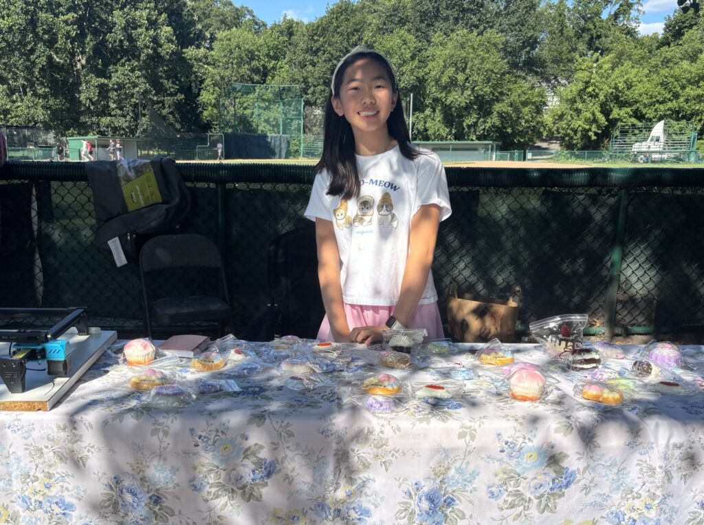 Victoria, an 11-year-old rising 6th grader from Weston, had her Vicarts Ai booth to present her handmade arts and crafts that she’s been working on for two years. Inspired by videos and tutorials she’s watched, Victoria was motivated to try creating her own set of squishies. Although she has attended previous events in both Weston and Newton, this is her first July 4th event selling her crafts. Her squishies are made from a combination of glue and dye. “I was pretty excited to come and present my hard work to everyone,” she said. Victoria enjoys presenting and being able to share her work with others.