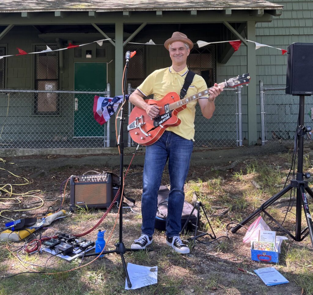 Matt Heaton, the guest musician at Kids Morning, performed live at the annual celebration for the first time. Heaton started playing the guitar when he was twelve, and after he had a son, became a music entertainer for kids. “I got into playing music for kids when we had a kid,” he said, “There’s always just that one kid that’s really into it, and I think it’s important for them to see live music and where it comes from.” He takes his inspiration mainly from Mr. Rogers from Sesame Street and mid-century American guitar styles. Heaton is often seen playing at the Newton Free Library on the second Wednesday of each month.
