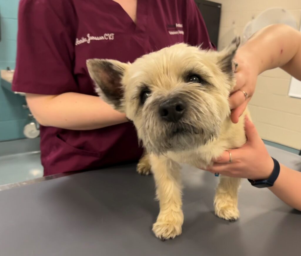 During separate appointments, the terrier and Mocha were both calm and quiet as students gently weighed and measured them and took their heart rates, temperatures, and respiration measurements under the supervision of veterinary staff.