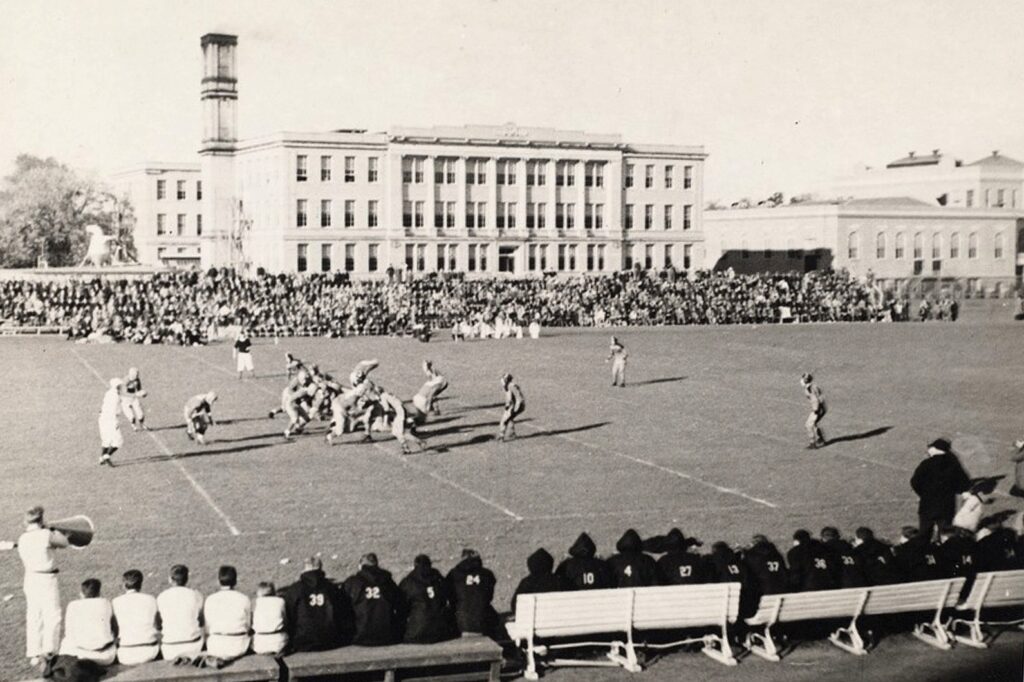High school students were placed into college preparatory, business, general studies, or voc/tech track. The classical high school was filled with donated artwork from Europe. Two formidable Romanesque figures, one male, one female, stood on either side of the main entrance. Students painted their toenails with red polish “to the wrath of the building custodian.”[1] The technical high school had workshops and a foundry for boys to learn carpentry, automotive, printing, and other trades. The girls had a household arts program, initially intended to raise the status and pay of domestic workers, but, without limits on the supply of workers through unionization or certification requirements, this did not happen, and the program evolved into home economics for homemakers.[2] The high schools had newspapers, debate teams, orchestras, bands, glee and drama clubs, and athletic teams winning championships: football in 1921, hockey in 1924, and baseball in 1928. Secret societies were banned.