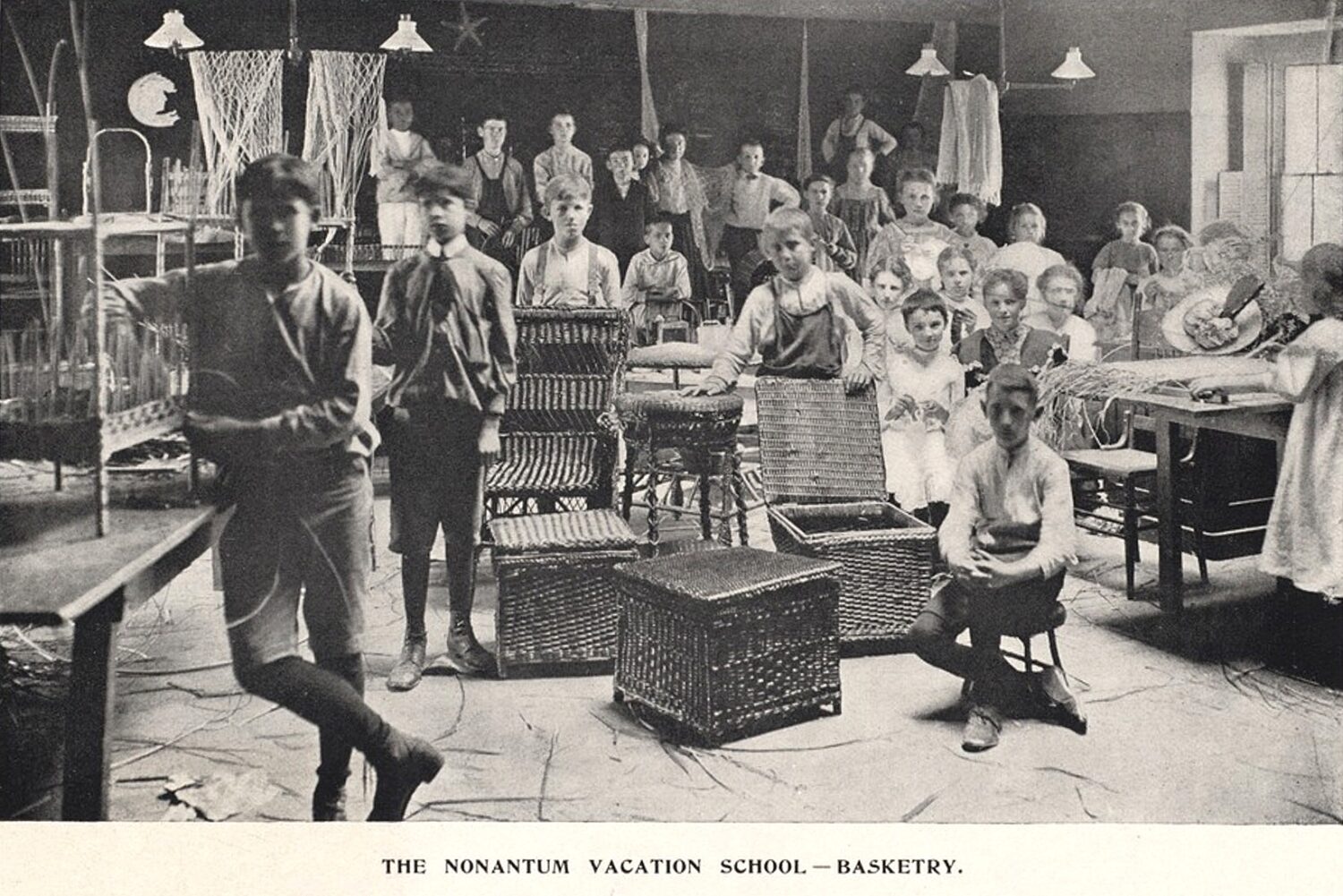 Vocational/Technical Education (Voc/Tech) began in 1888 with the Vacation Industrial School in Thompsonville run by the Social Science Club. It taught 35 girls how to sew and is believed to be the first free summer school in Massachusetts. It quickly expanded to instruction in cooking, carpentry, basketweaving, and other practical skills for hundreds of boys and girls. In 1903, the City provided free space for the vacation school and, in 1908, took charge of the program. Other social charities across Newton provided not only vocational training, but also child care, meals, medical and dental services, and even housing and employment services for parents. Newton Public Schools supported and consolidated many of these social services at the Stearns School in Nonantum.