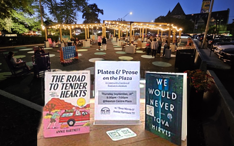 Join All Over Newton, Newtonville Books, Newton Centre restaurants, and local authors Tova Mirvis and Annie Hartnett on Thursday, September 18, 5:30-7PM on the new Newton Centre Pilot Plaza for an outdoor evening of food and literature. Order from a Newton Centre restaurant and get together with others for a community dinner while Tova Mirvis and Annie Hartnett read excerpts from their recent novels. Come with a friend, family member, or alone for this laid-back, early fall evening in Newton Centre.