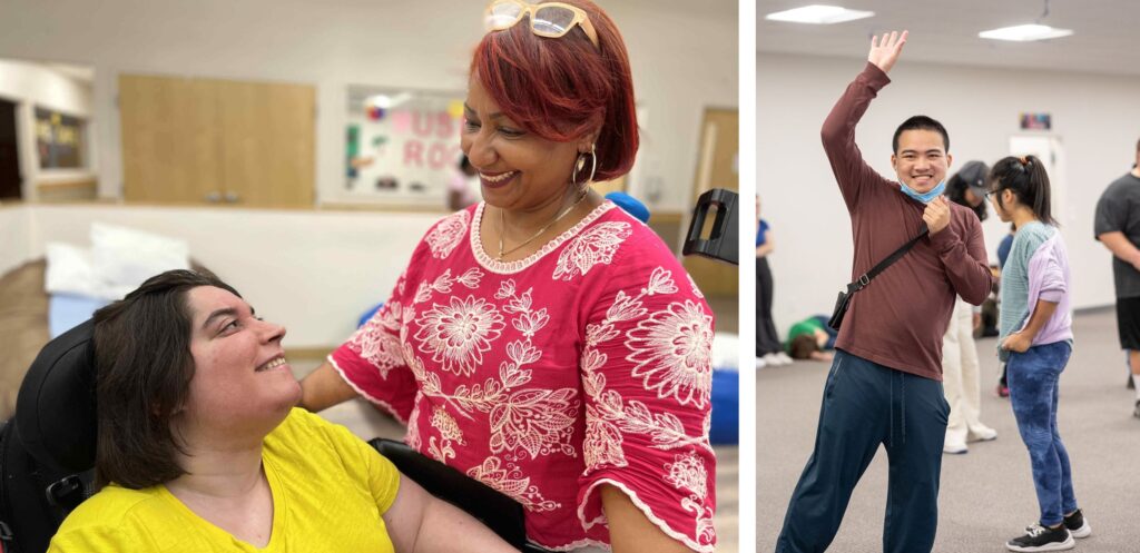 Left: Jen, a participant in The Price Center’s Intensive Day Habilitation program, with Direct Care Professional Felicia Nova. Right: Carson, a participant in the Community Based Day Program, enjoys getting active during Zumba, offered twice a week to foster participants’ active engagement within the community. (courtesy photos)