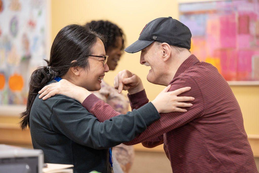 Adam (right), a participant in the Day Habilitation program, shares a dance during Zumba class with Sara Buys, Human Resources Generalist at The Price Center. Adam is known as “The Mayor” at the nonprofit for his ever-positive and friendly presence.