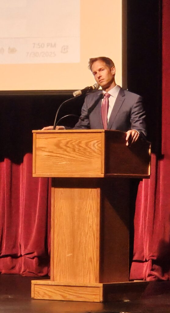 How can the Democratic Party regain power was the second most common question. The Congressman noted that attacks on Trump have not changed the president’s favorability ratings for over a decade. To ‘get back in the game,’ Democrats need to focus on the rising costs of housing and healthcare, which together consume 50% of a middle-class American’s budget. He stated that we need to build more housing, and that the MBTA Communities Act can only create 15% of the new housing the State needs. He welcomed the suggestion of creating a new small city at Fort Devens (state-owned land). He called for strengthening state-run Medicaid programs and ‘expanding the footprint of government’ health care at the local level. He said Democrats need to hammer home in the midterm elections that Trump’s Big Beautiful Bill is increasing health care costs.