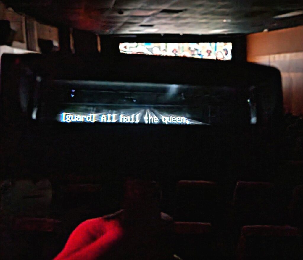 The third and final feature, individual closed-caption receivers, are about the size of a phone and fit into the cupholder of a seat. They display the movie’s sound effects and dialogue as text.