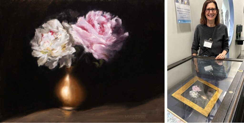 Dr. Deborah Schlossman’s oil painting, Garden Roses, which features blooms from her own garden, was described by judge Katherine Downey Miller as bringing “to mind the beauty and work of an old Dutch master,” during the awards ceremony at the show’s reception on September 15.