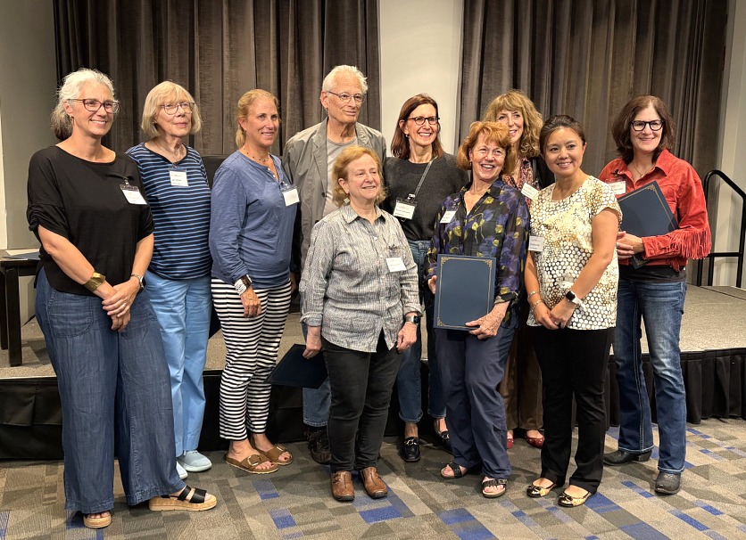 Back, from left: Hilary Bruel, Gail Hansen, Exhibit Judge Katherine Miller, Sam Sweezy, Deborah Schlossman, Jenny Pivor, and Sharon Schindler.