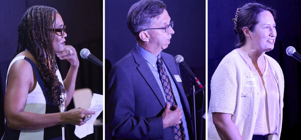 Chamber board chair Angela Pitter, Chamber president Greg Reibman, and West Newton Cinema Foundation president Elizabeth Heilig (photos: Nicole Connolly)