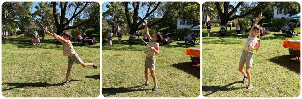 Her son Calvin Hay, 8, played “Graces” with his dad, Jonathan. The game involved each holding two sticks and using them to toss a small hoop back and forth. While they may not become professional Graces players, they had almost as much fun as families enjoying free ice cream from Cabot’s.
