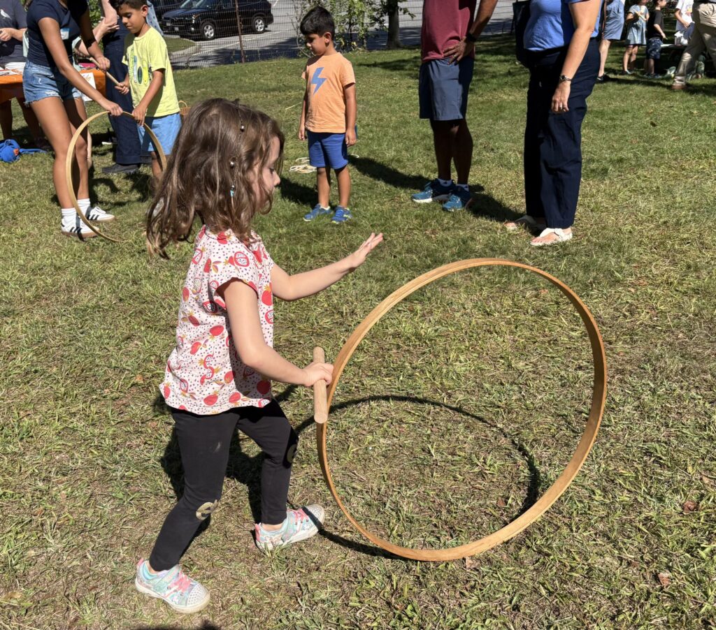 Getting a brief glimpse into children’s activities of bygone days, families happily tried their hands at candle making, basket weaving and playing “Graces,” among other activities, during Historic Newton’s Homestead Hayfest on September 28, behind the Jackson Homestead and Museum on Washington Street.