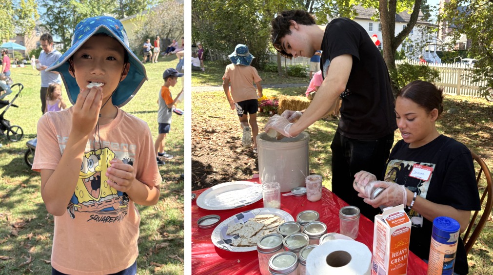 While kids scampered from activity to activity, many parents wandered the backyard of the grand Jackson Homestead, which was built in 1809, shaking mason jars filled with heavy cream with the hopes of making a bit of butter. Some were more successful than others and enjoyed schmears of the dairy treat on crackers after 20 minutes of labor.
