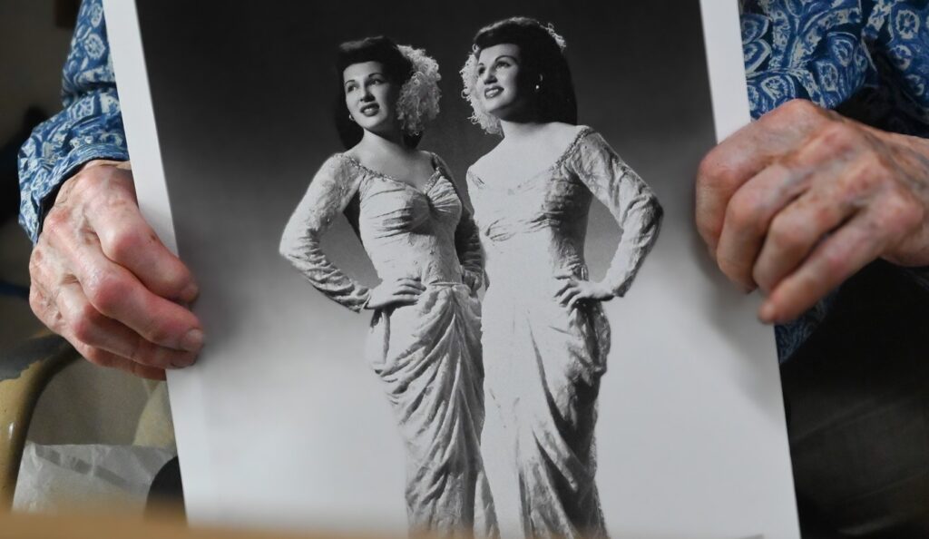 Close-up of a portrait of Bartevian and her sister as the Hickory Sisters, originally photographed by Maurice Seymour. (photo: Mina Rose Morales)
