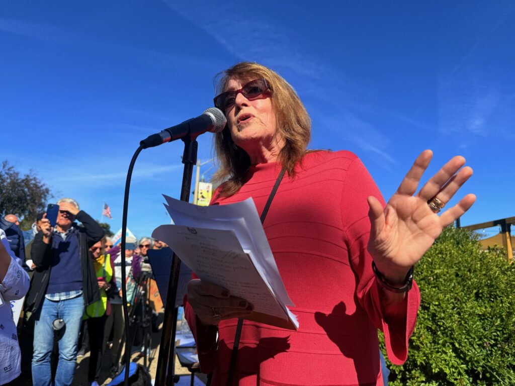 Former U.S. Federal Judge Nancy Gertner, now a Harvard Law professor, told the crowd she was warned to “keep my head down” when she was a judge. She condemned the Trump administration’s “rogue” behavior and assault on democratic institutions.