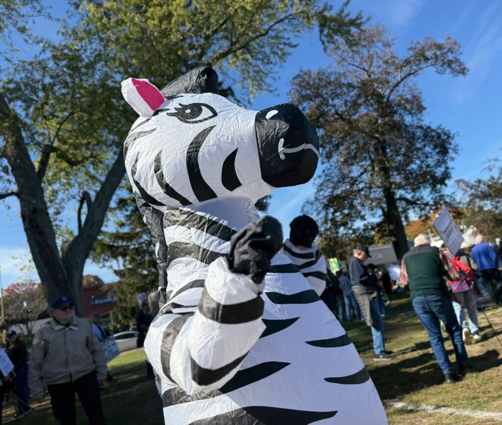 Bonnie and David Rind drew smiles as Bonnie was wearing an inflatable zebra costume. It was difficult to hear Bonnie behind the plastic veil of the costume, so David explained to Fig City News the choice for the costume.