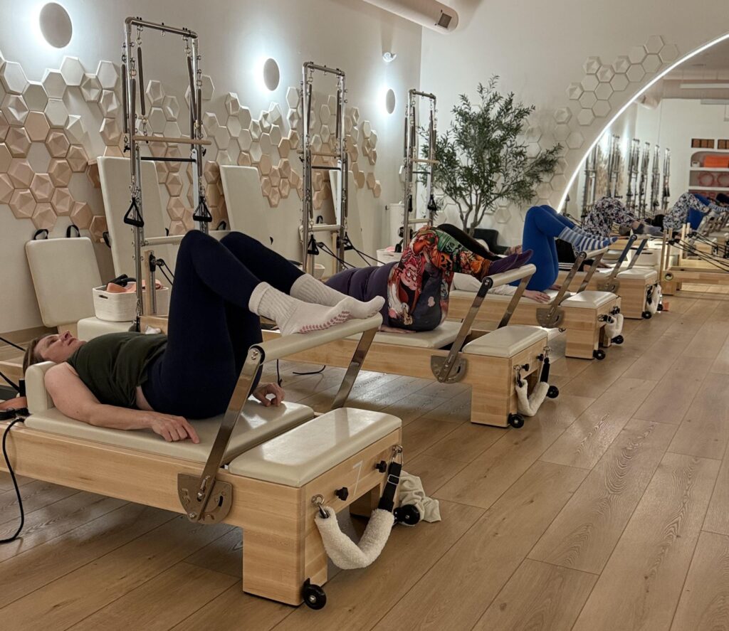 On a rainy Tuesday morning, instructor Carrie Johnson led a dozen brave souls through a reformer Pilates class. Pilates can be challenging, testing rarely used muscles, even for those who stay active.