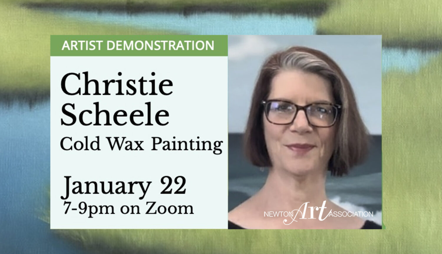 On Thursday, January 22 from 7-9PM Christie Scheele will demonstrate painting with cold wax on Zoom.