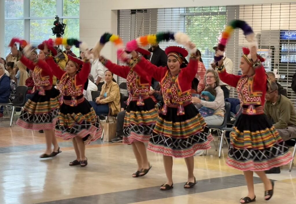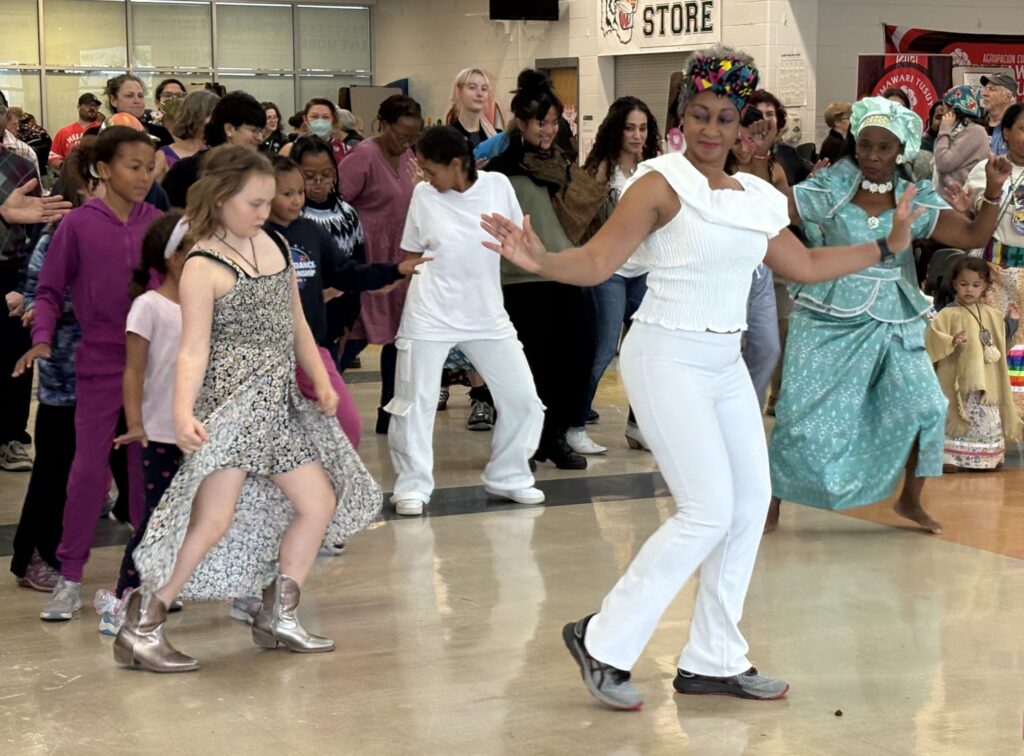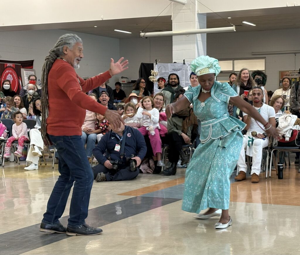 Some performers traveled far to come to Newton’s event, including the group SanArte Cultura from Puerto Rico. Member Angel Luis Reyes danced with an attendee, while Jeanitza Aviles, the group’s artistic director, showed audience members some steps.