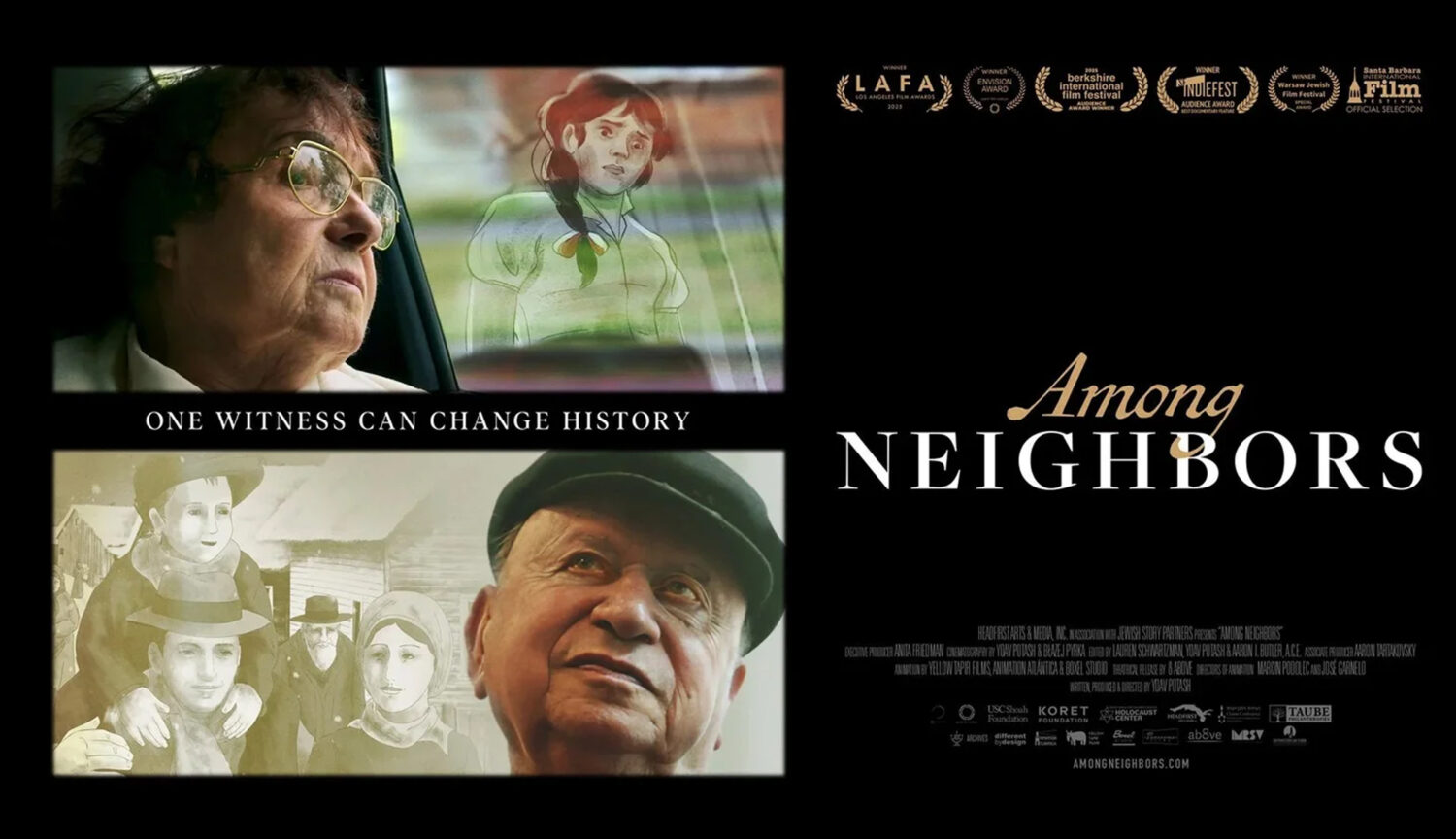 Using beautiful hand-drawn animation to bring the past to life, “Among Neighbors” investigates the story of a small, rural town where the longstanding peace between Jewish and Polish neighbors was shattered by World War II. Now, in an era where difficult truths about the past are being silenced for political gain, the film focuses on the only living Holocaust survivor from the town, and an aging eyewitness who saw Jews murdered there – six months after the Nazis were defeated. Produced and directed by award-winning filmmaker Yoav Potash (“Crime After Crime,” Sundance Film Festival), “Among Neighbors” is an evocative and heart-pounding murder mystery with urgent political relevance.
