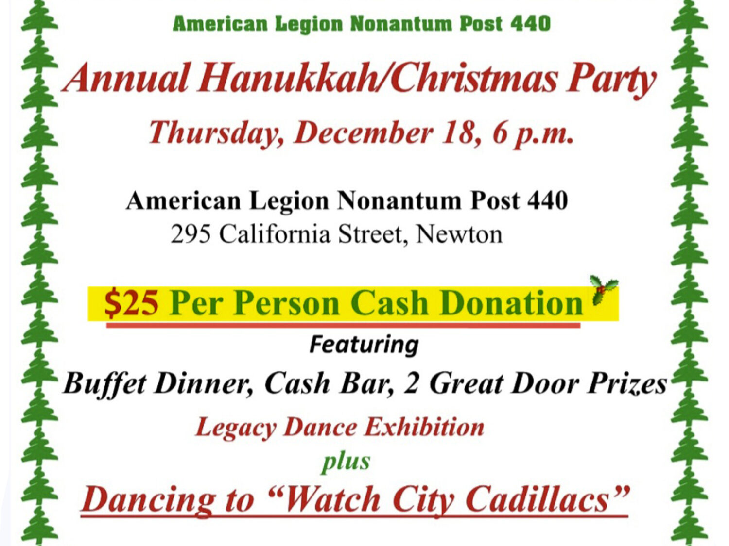 American Legion Nonantum Post 440: Annual Hanukkah/Christmas Party, Dec. 18