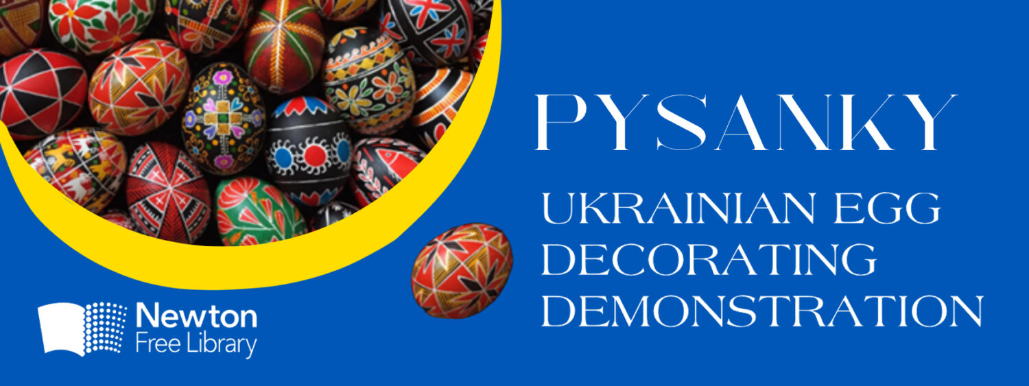 The Newton Free Library will host Pysanky: Ukrainian Egg Decorating Demonstration on Monday, November 24 at 6:30PM. At this demonstration, Christina Pasicznyk Vogel will explain the history and symbolism of “writing eggs” in the ancient Ukrainian tradition. After a presentation about pysanky eggs, Christina will demonstrate the process live. There will be plenty of time for questions throughout the program.