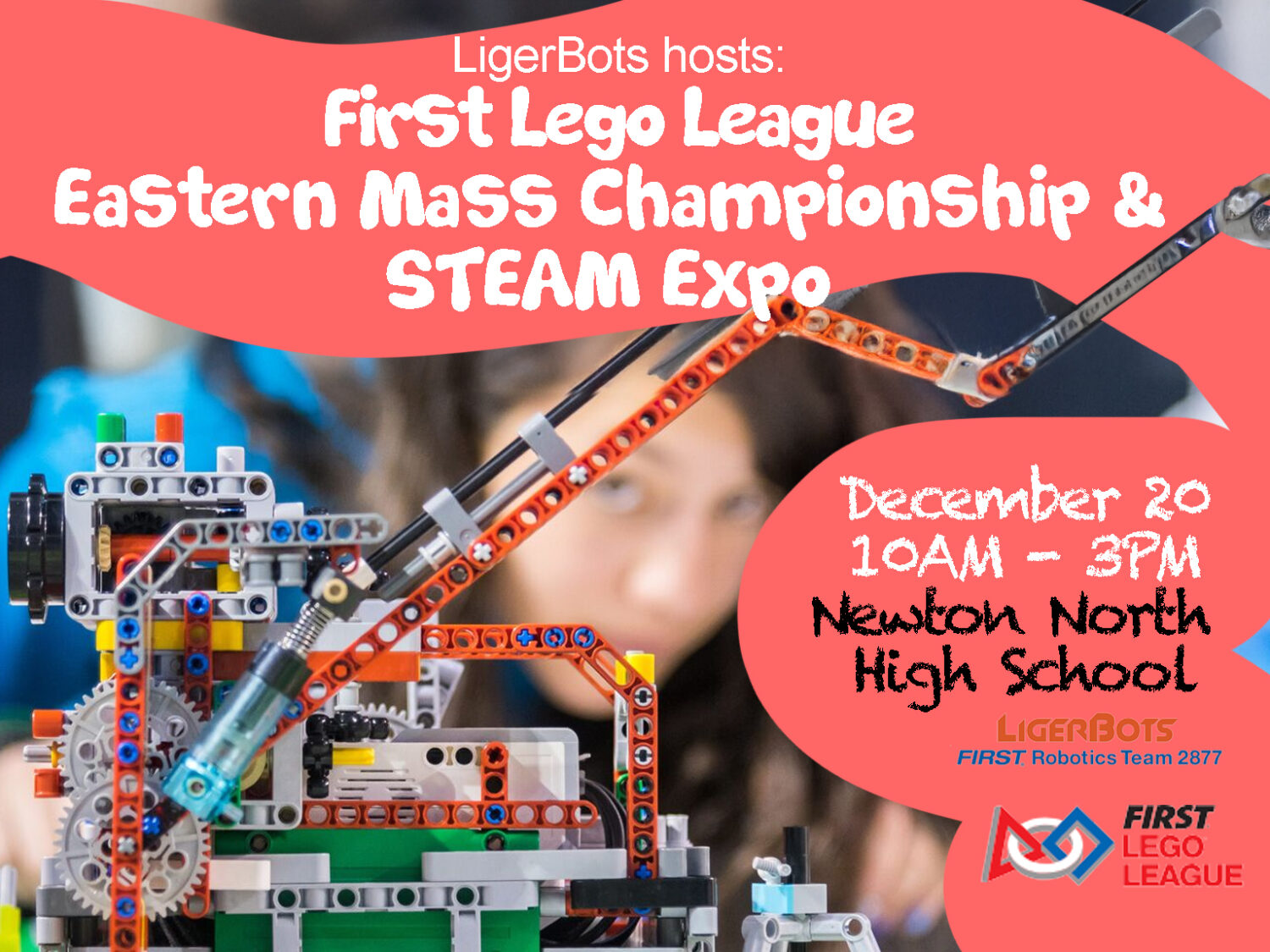 The LigerBots are sponsoring the FIRST Lego League (FLL) Eastern Massachusetts Championship and STEAM Expo on Saturday, December 20 from 10AM-3PM at Newton North High School. This event is open to the public!