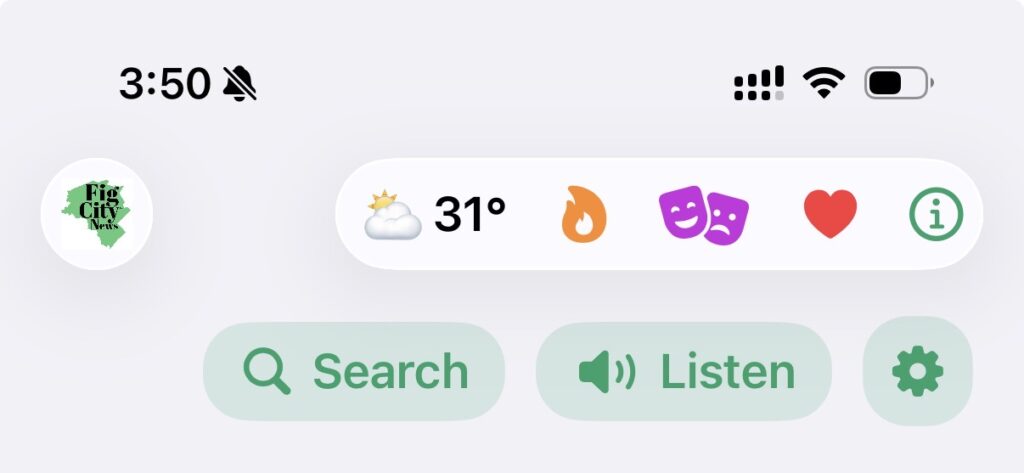 Separate from the newly launched Fig City News Podcast — which shares select stories from Fig City News in audio form for you to listen on the move — the app also can play the stories on the home page. Hit the LISTEN button at the top of the app, and advance back and forth through the stories with the media player that pops up. You can select the voice used in the settings.