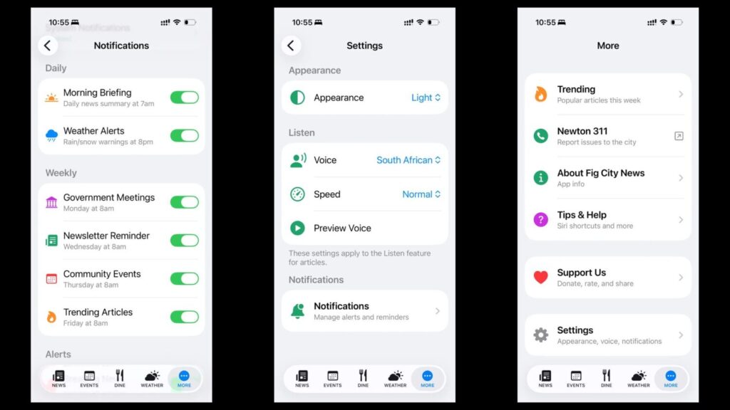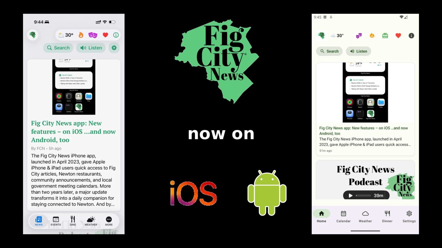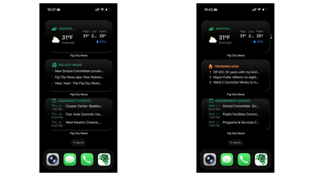 The Fig City News iPhone app, launched in April 2023, gave Apple iPhone & iPad users quick access to Fig City articles, Newton restaurants, community announcements, and local government meeting calendars. More than two years later, a major update transforms it into a daily companion for staying connected to Newton. And by popular demand, it’s now also on Android!