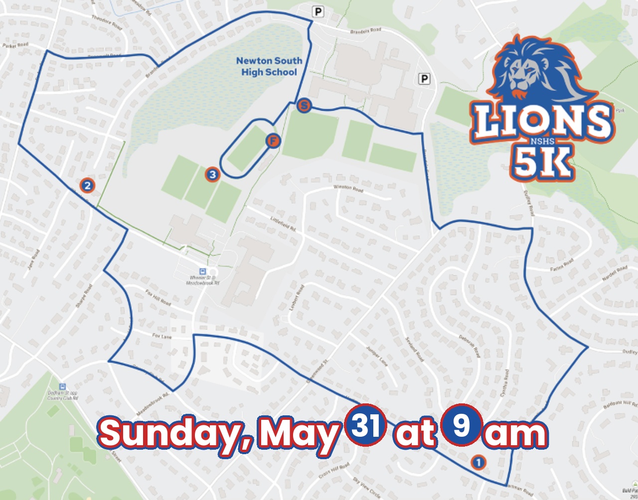 Join the Newton South Booster Club for the 5th Annual Lions 5K Road Race on Sunday, May 31, 2026!