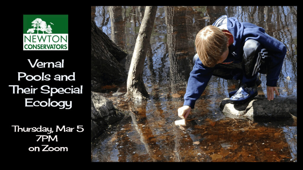 Newton Conservators will be hosting a webinar, “Vernal Pools and Their Special Ecology,” at 7PM on Thursday, March 5. To attend, sign up for the webinar. Seasonal ponds, known as vernal pools, are full of life and can be found throughout our region. Newton has several, including Bare Pond in…