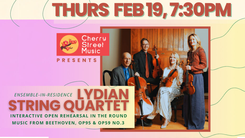 The Naumberg Award-winning Lydian String Quartet, recently named Ensemble in Residence at The Allen Center (35 Webster Street, West Newton), will deliver the third of four interactive open rehearsals taking place throughout the year on Thursday, February 19 at 7:30PM. Tickets are $30. Currently rehearsing music from Beethoven String Quartets Opus 59 #3…
