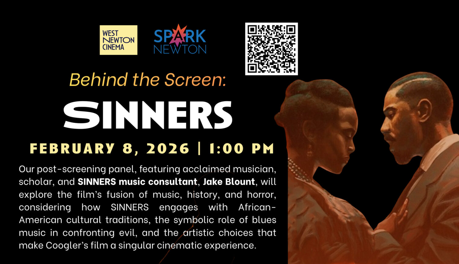 West Newton Cinema and Spark Newton present “Sinners” on Sunday, February 8 at 1PM at the West Newton Cinema (1296 Washington Street, West Newton). A panel discussion will follow the screening. Tickets are $12.