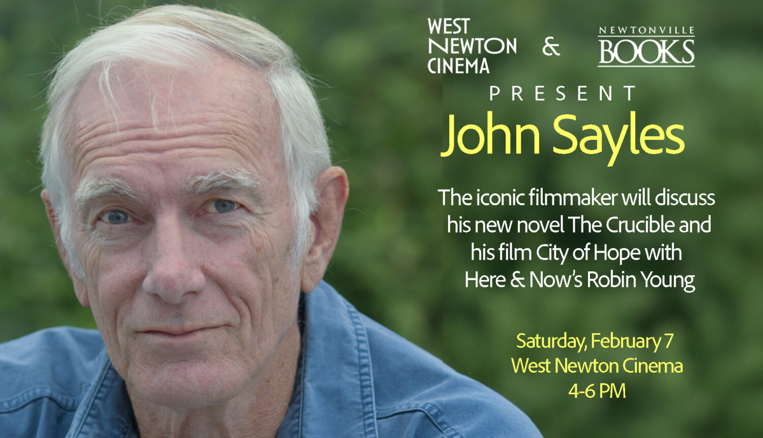 West Newton Cinema Presents iconic filmmaker John Sayles reading from and discussing his new novel The Crucible along with his classic film, City of Hope, with Here & Now’s Robin Young on Saturday, February 7 from 4-6:30PM. Tickets are $20/person and include the screening, reading, book signing, and Q&A.