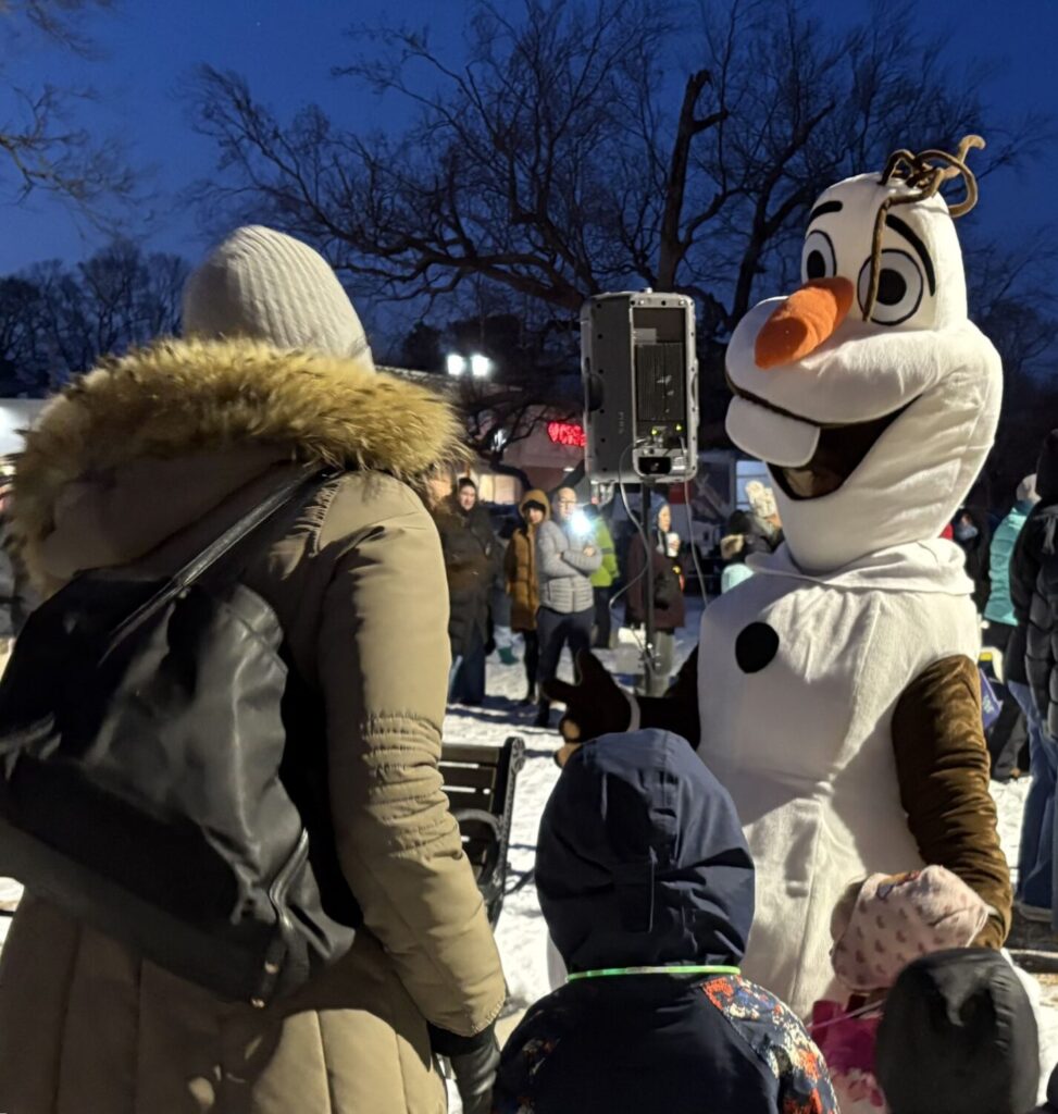 Visitors on Friday could also listen to a cappella performances by local groups; watch ice sculptures being made and a hoop dancing performance; or say hello to Olaf from Frozen or Officer Leo, the City’s affectionate community resource dog.