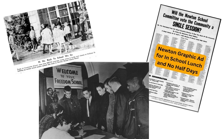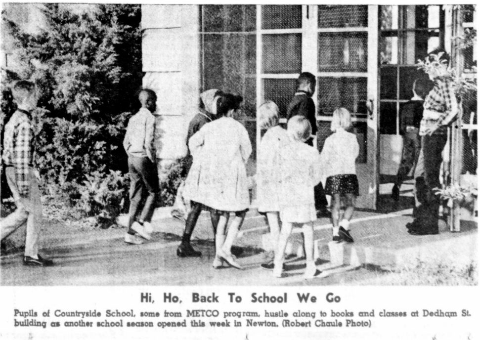When METCO (the Metropolitan Council for Educational Opportunity) program began in 1966, organized opposition emerged in Brookline, Wellesley, Needham, and other neighboring suburbs, but not in Newton. METCO had “a smooth start here” without “incident or fanfare.” Instead of protesting METCO, Newton’s parents were protesting lunchtime.