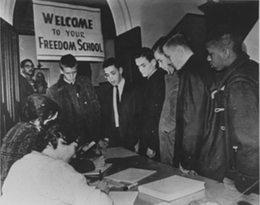 African American parents in Boston and their allies lobbied for better schools through petitions, marches, and Stay Out for Freedom days, during which students boycotted school and attended volunteer-run Freedom Schools that taught African American history and culture. On February 7, 1964, Newton residents Hubie and Katherine Jones arranged for over 300 white Newton children to participate in a Stay Out for Freedom Day. White students went into Boston, and African American Boston students attended Freedom Schools at Myrtle Baptist Church, the First Unitarian Society, and the Second Congregational Church in Newton