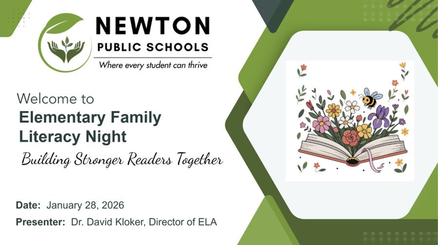 NPS’s Literacy Night presentation on January 28 focused on the NPS Literacy Program and how parents of children in Grades K-5 can help them at home. It was led by Dr. David Kloker, the district’s new Director of English Language Arts & Literacy PK-12, who was hired last summer. He emphasized his personal philosophy around education, how the district is using its curricula to meet standards and develop students’ literacy skills, and advice for parents around ways to advocate for their students and home activities that can encourage literacy skills. Other topics included parent concerns around the use of technology in teaching reading and the need for the City to invest in curricular materials for literacy as well as technology education and health education in relation to technology engagement.