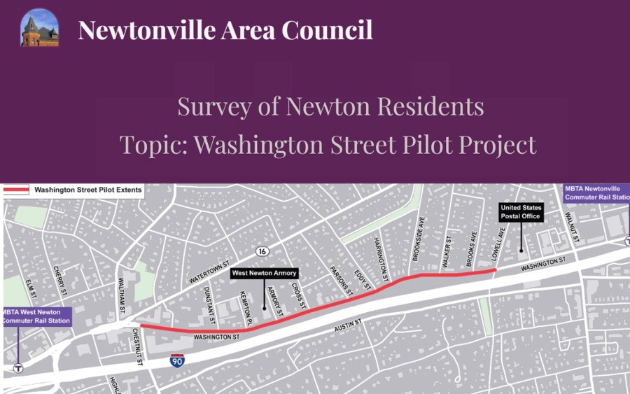 The Newtonville Area Council is conducting a survey of opinions and usage of the Washington Street Pilot changes made to Washington Street between Chestnut and Lowell Streets. All are invited to participate before the survey closes on February 18. The results of the survey will be shared with the City Council and the project committee.
