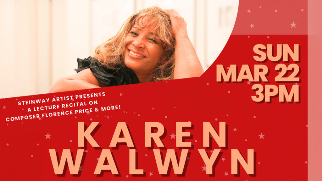 On Sunday, March 22 at 3PM, Steinway pianist Dr. Karen Walwyn returns to The Allen Center (35 Webster St, West Newton) for an illuminating lecture-recital celebrating the incredible life and works of Florence Price. A leading expert on Price’s music, Dr. Walwyn recorded the world premiere of Price’s Concerto in One Movement with the…
