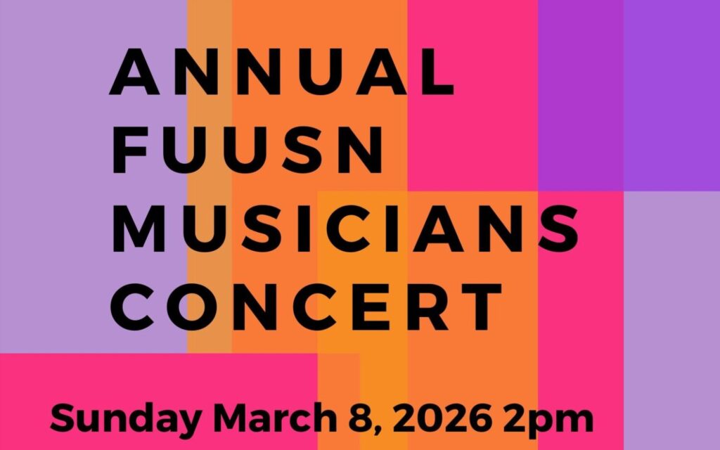 Come and hear the wonderful musicians of the First Unitarian Universalist Society (FUUSN) in concert on Sunday, March 8, 2026 at 2PM in the FUUSN Sanctuary (1326 Washington Street, West Newton). This concert is a fundraiser for the UU Urban Ministry. You’ll hear classical chamber music by pianists Paul Antonucci and Lois Shapiro,…
