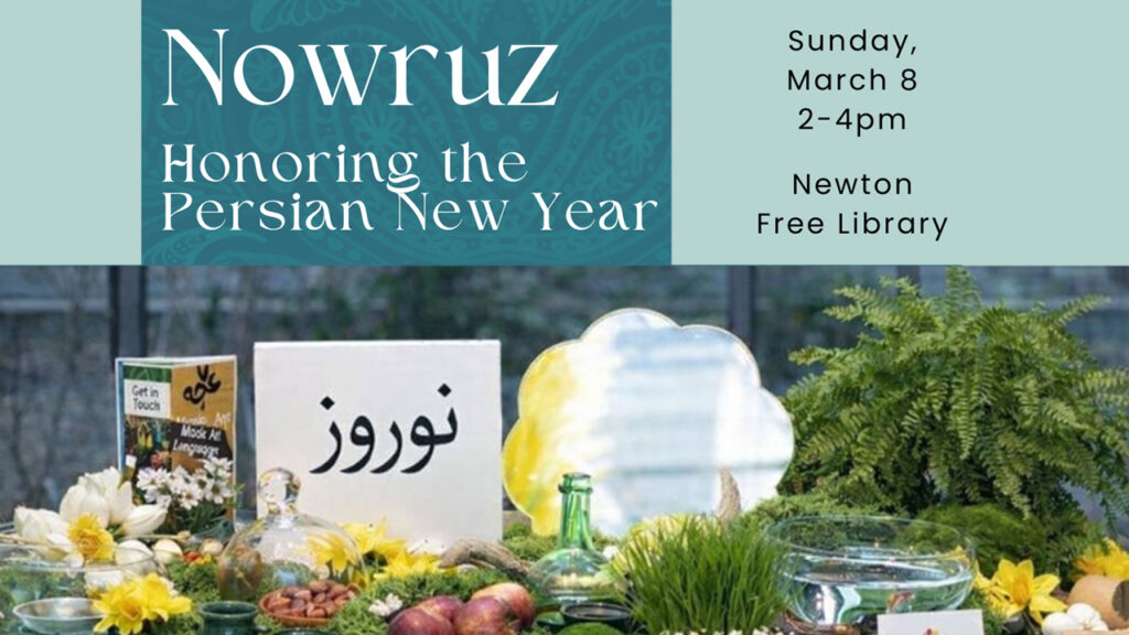 Visit the Newton Free Library (330 Homer Street, Newton Centre) on Sunday, March 8 between 2 and 4PM for a family-friendly gathering in honor of Nowruz, the Persian New Year and the arrival of spring. This open-house style program invites families to drop in for hands-on crafts, a traditional Haft Seen…