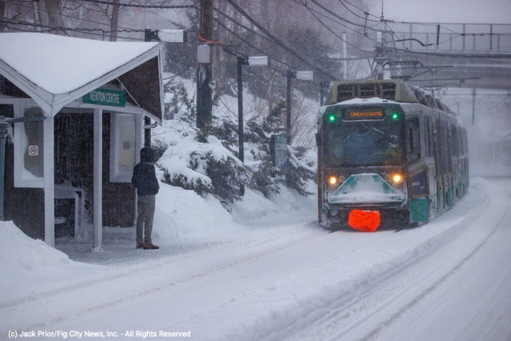 Of the several dozen businesses and restaurants in Newton Centre, only CVS, Tatte, Sandwich Works, and the Newton Center Gulf Station were open for the day. The MBTA Green Line continued to operate throughout the storm on a reduced schedule.