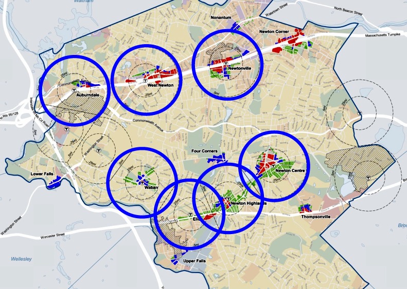 Early proposals for VCOD would have rezoned all of Newton’s village centers, but the ordinance narrowed as it was shaped alongside the MBTA Communities Act, with some centers pushing to opt out.