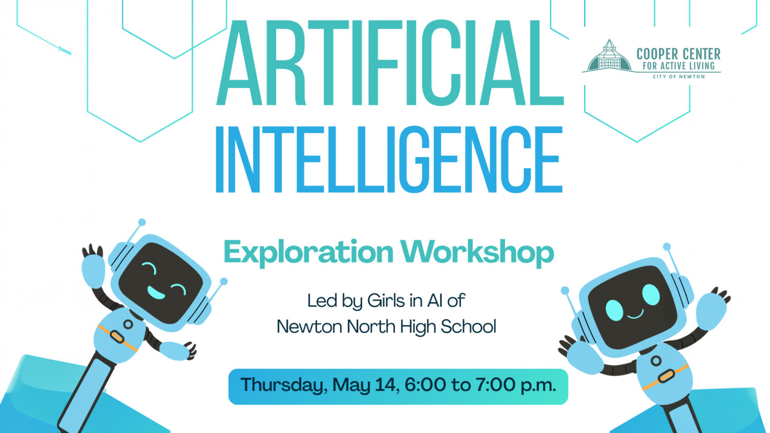 Led by Girls in AI of Newton North High School, this beginner-friendly workshop at the Cooper Center (345 Walnut Street, Newtonville) on Thursday, May 14 from 6-7PM will introduce older adults to the basics of artificial intelligence (AI) in a fun and accessible way.