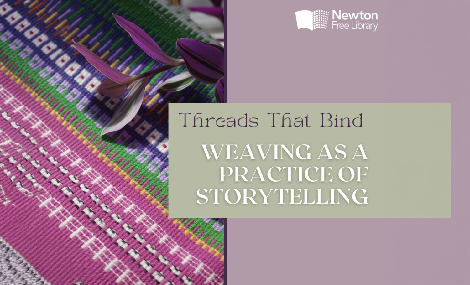 On Tuesday, May 5 at 6:30PM, the Newton Free Library (330 Homer Street, Newton Centre) will host Threads That Bind: Weaving as a Practice of Storytelling with Joshua Kurtz. Registration is required.