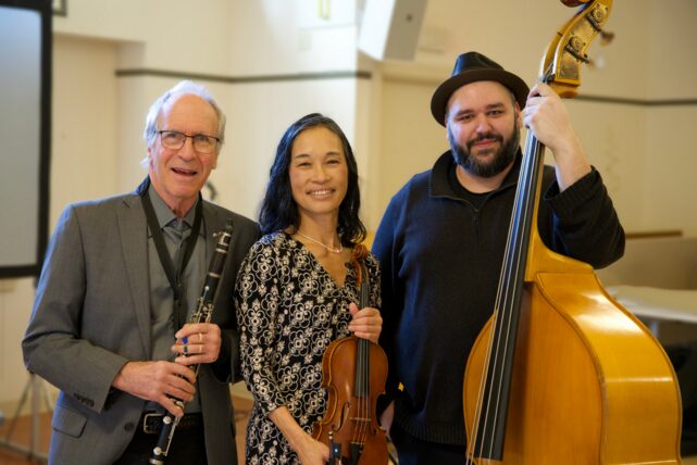 Billy Novick is an internationally recognized jazz musician who has appeared in hundreds of well-known recordings and films. Tomoko Iwamoto is a classically trained “jazzy violinist” and the centerpiece of numerous Boston-area ensembles. Boston native and Berklee-trained bassist Greg Toro the anchor of this terrific trio.